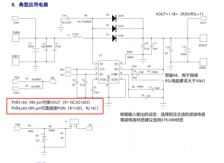 内置过热保护,逐周期过流保护,输出过压保护(VIN VOUT 供电时)
