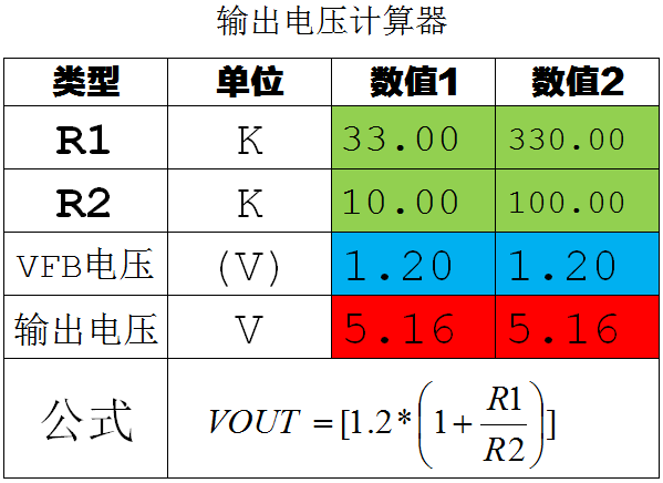 TX4208 输出电压计算器:
