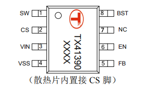 TX41390 采用ESOP8 封装,散热片内置接CS脚。