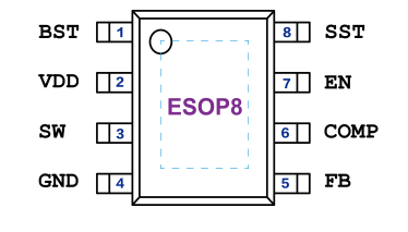 采用低 ESR 陶瓷输出电容即可稳定工作,输入欠压锁定,输入过压保护,防止设备在高输入电压下工作,输出过压保护,输出短路保护,同时具有高低端电流限制来保护设备。
